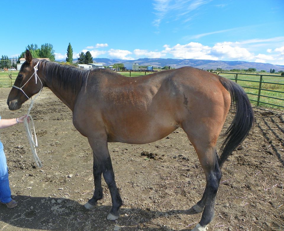 This is Beebes, she has had a rough go of it. Initially, we were worried that she may have to be euthanized as she only scored a 1 to 1.5 on the Henneke scale, was very swollen on her hind legs and walking was painful. Her amazing ability to survive was inspirational. She has gained 250 Lbs , is close to a body score of 4, and is now trotting around her corral, determined to never miss another meal. She would love a home as a companion horse, requires a mush diet. Beebes is up to date on her vaccinations, worming, teeth floating and hoof care.