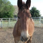Phoebe is an approx. 9 year old mule out of a Walking Horse mare. She needs to be started under saddle, Phoebe is very smart and sensitive, learns quickly. She is thin at this time, needs to gain weight, will have her teeth floated soon. Phoebe is about 14.3 hands tall and friendly, loves to be groomed, loads nicely in the trailer.