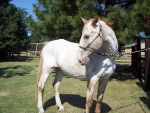 Red, a spotted red roan color appaloosa, 16+ hands, approx age 19 or 20 years old. Found by USFS at the Salmon La Sac Cathedral trailhead. Red needs to gain some weight, is current on his worming and farrier work. He is a bit sore on his front left, but we think it may be from being ridden barefoot on rocky ground. Red has a cool personality.
