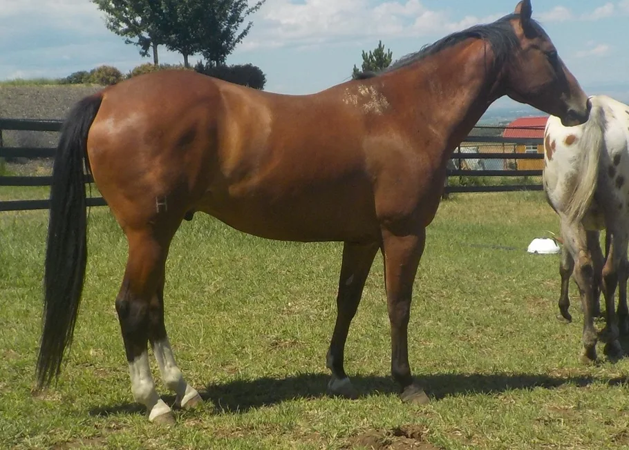 his story… Aros is a QH gelding that is nicely broke. He was used for pleasure and trail riding in the past. He is a curious type of guy, has his nose in everyone business. Keep an eye on your brushes or he may be turning them into a plaything or packing them off. Aros currently has a bone…